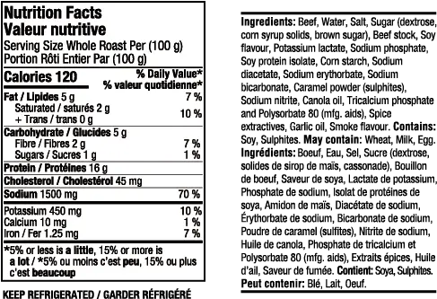 Whether piled high on sandwiches, served alongside cheeses and crackers, or enjoyed straight from the package, our smoked beef eye of round promises a delicious experience every time. Elevate your deli spread with Deli Classic today
